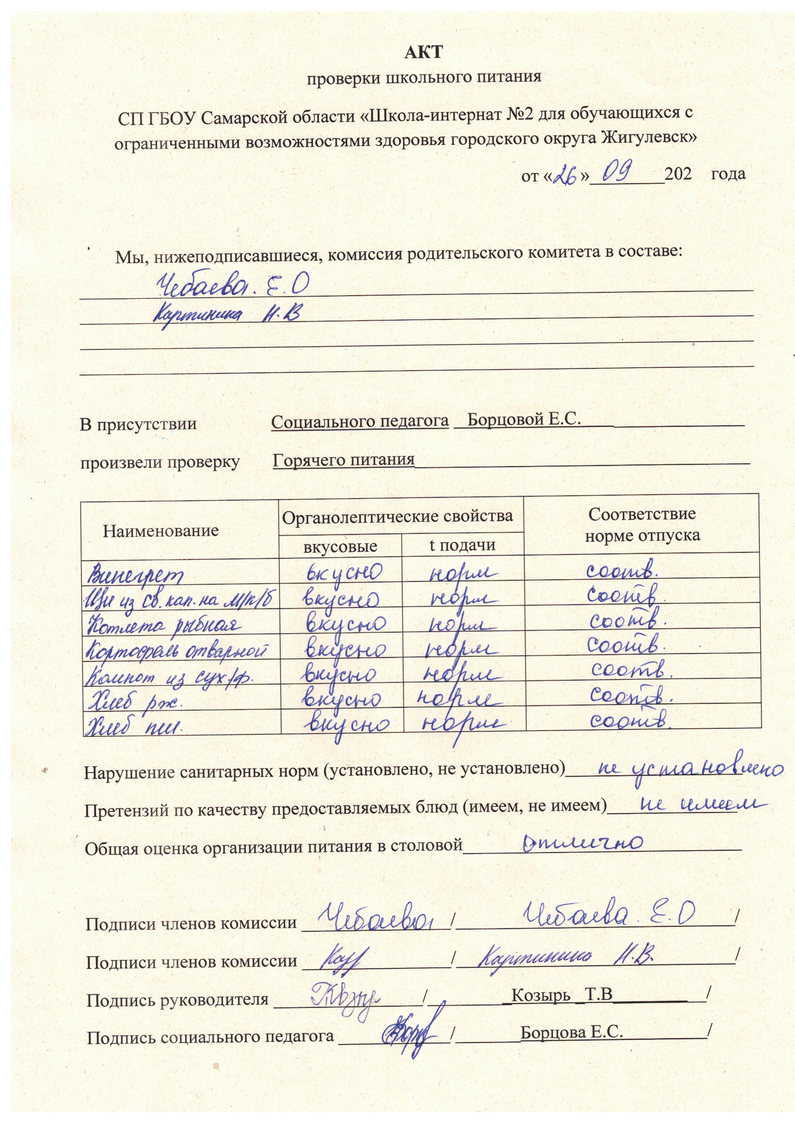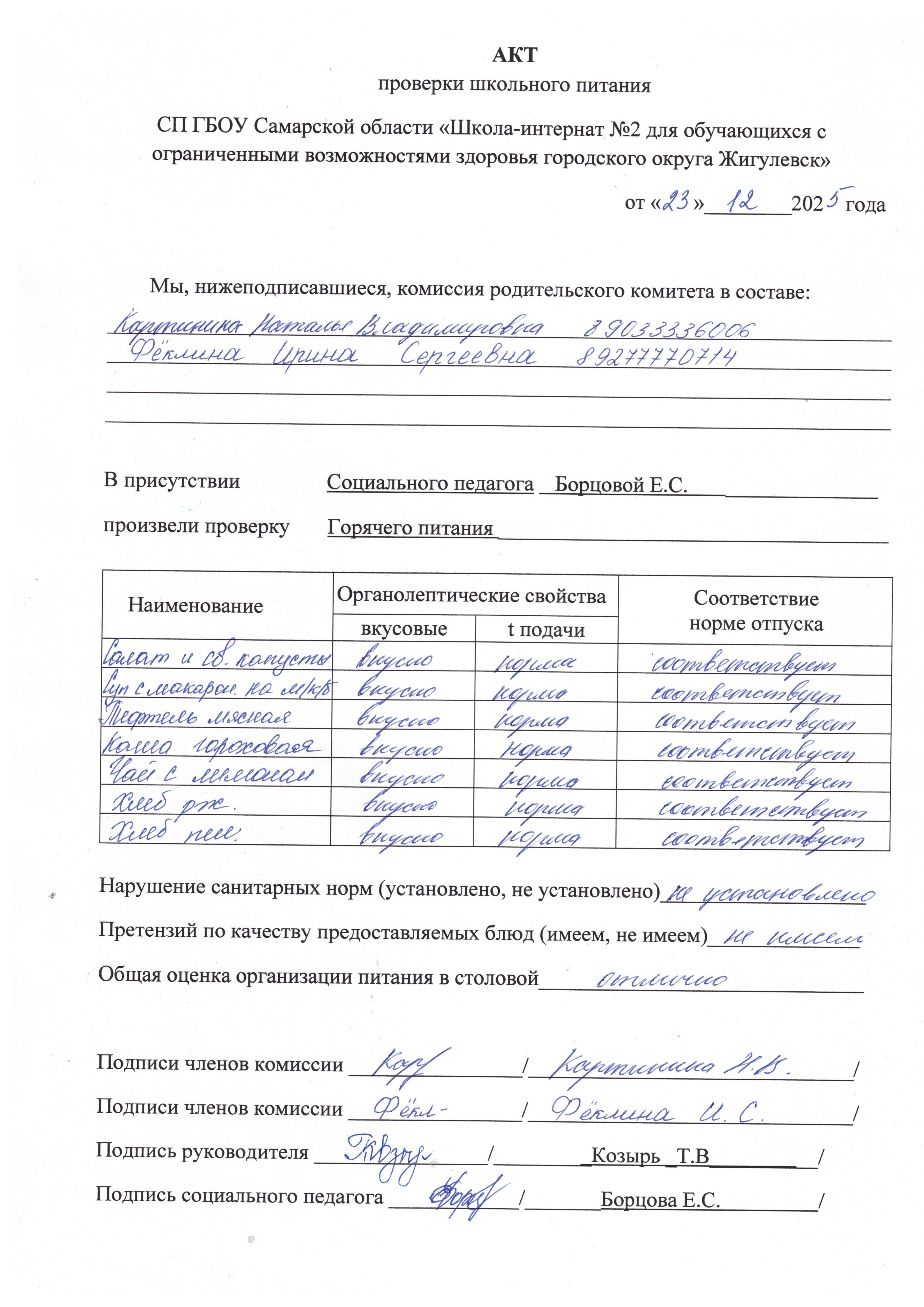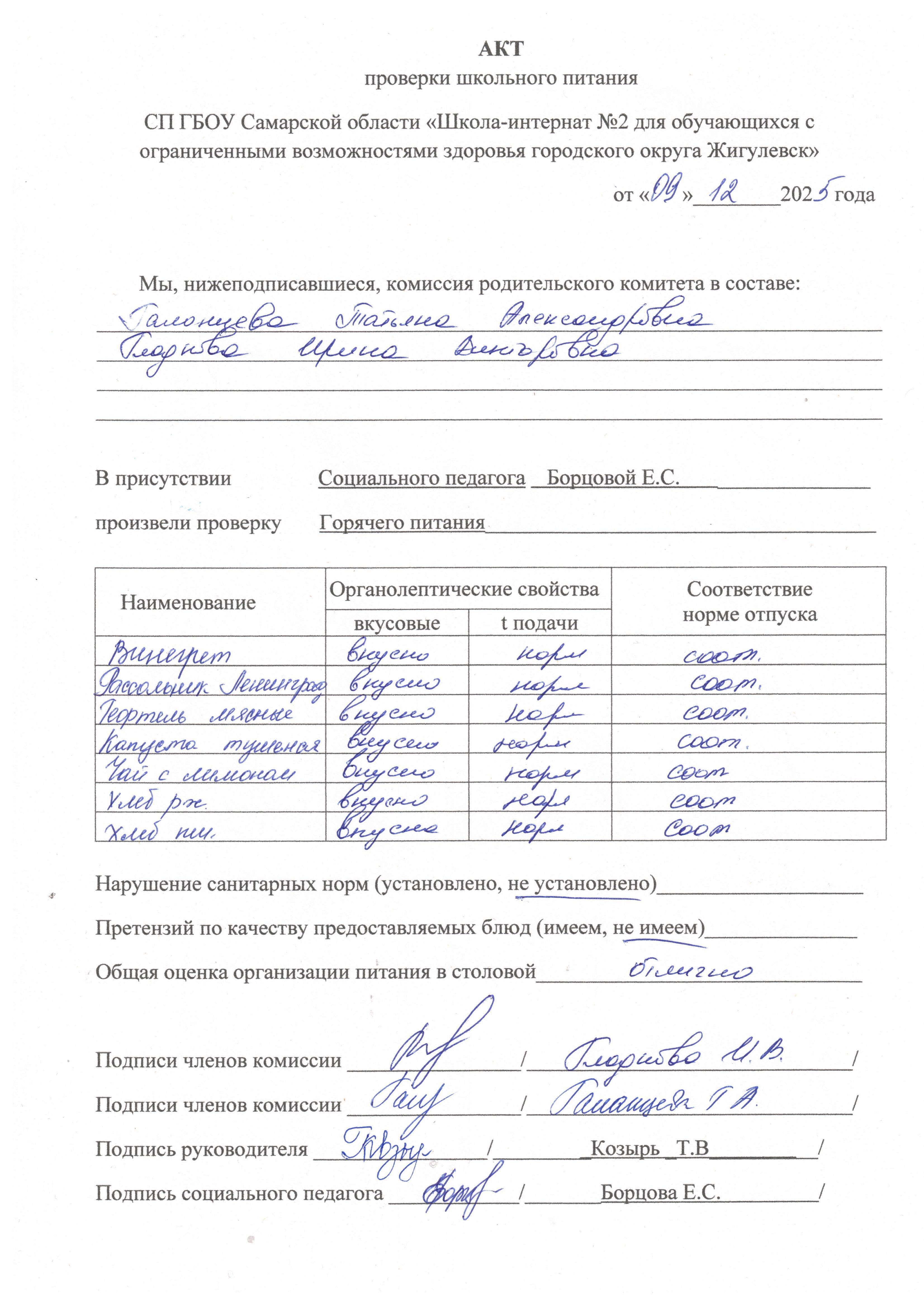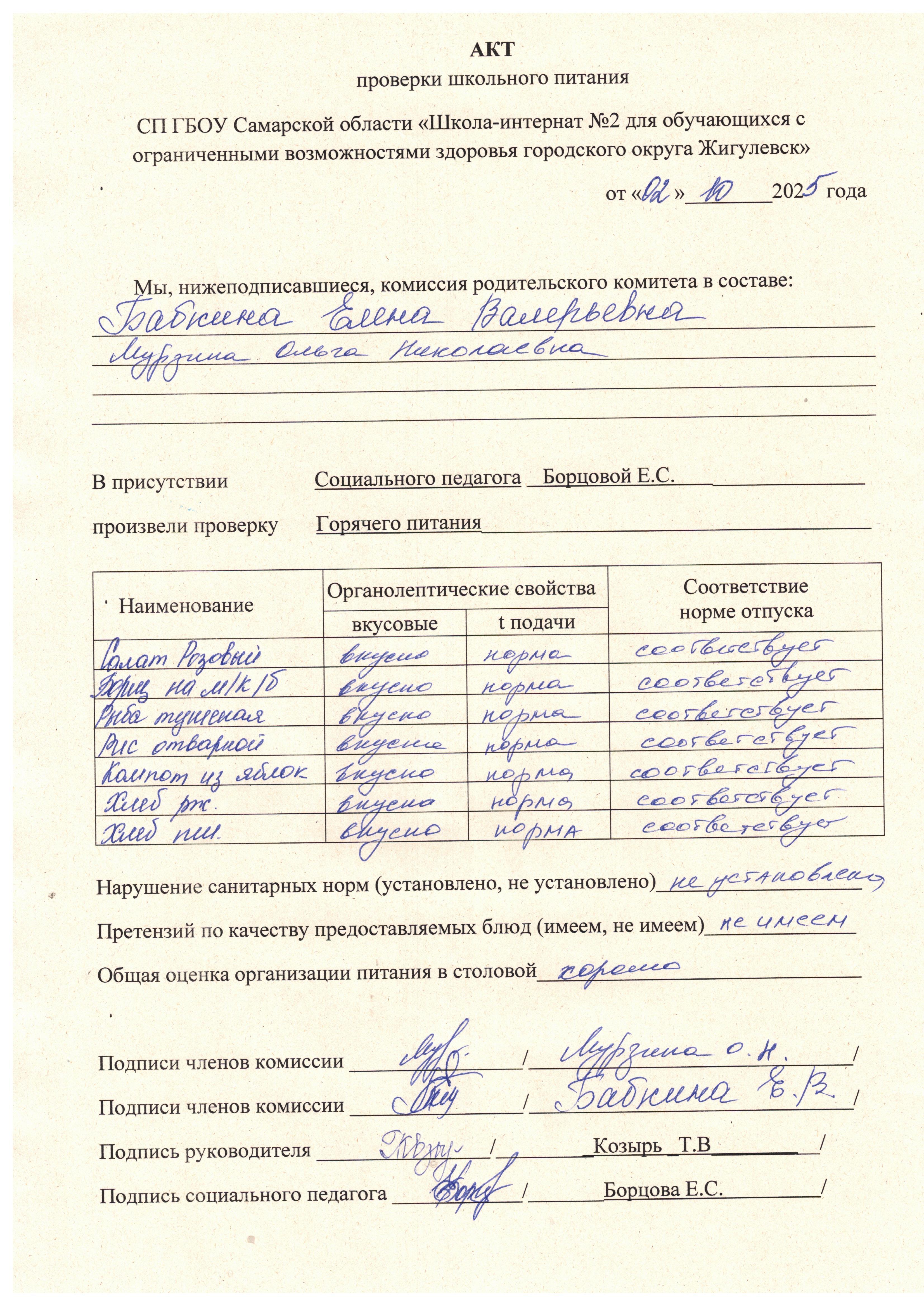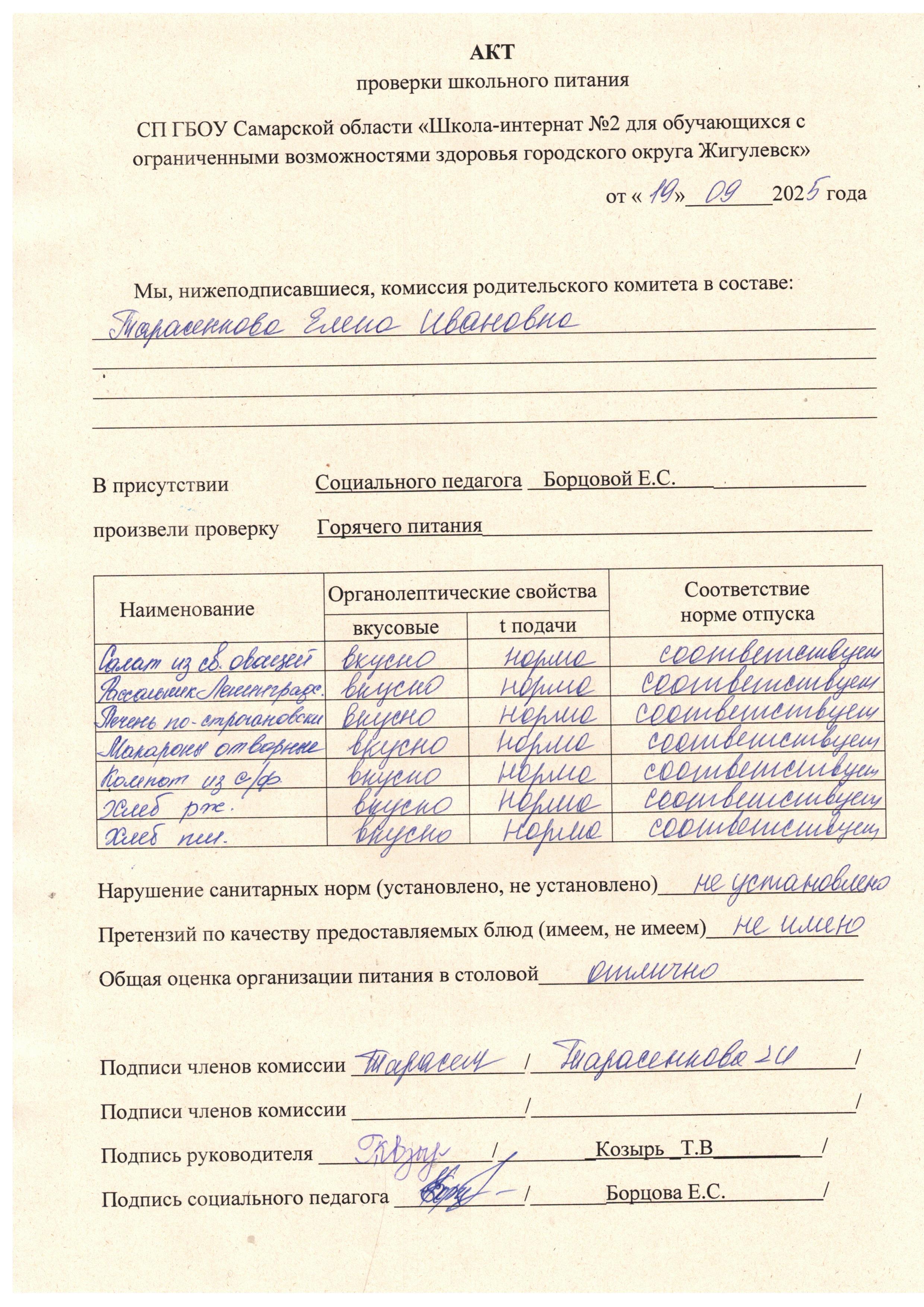 Акты общественного (родительского) контроля 2025-2026 учебный год