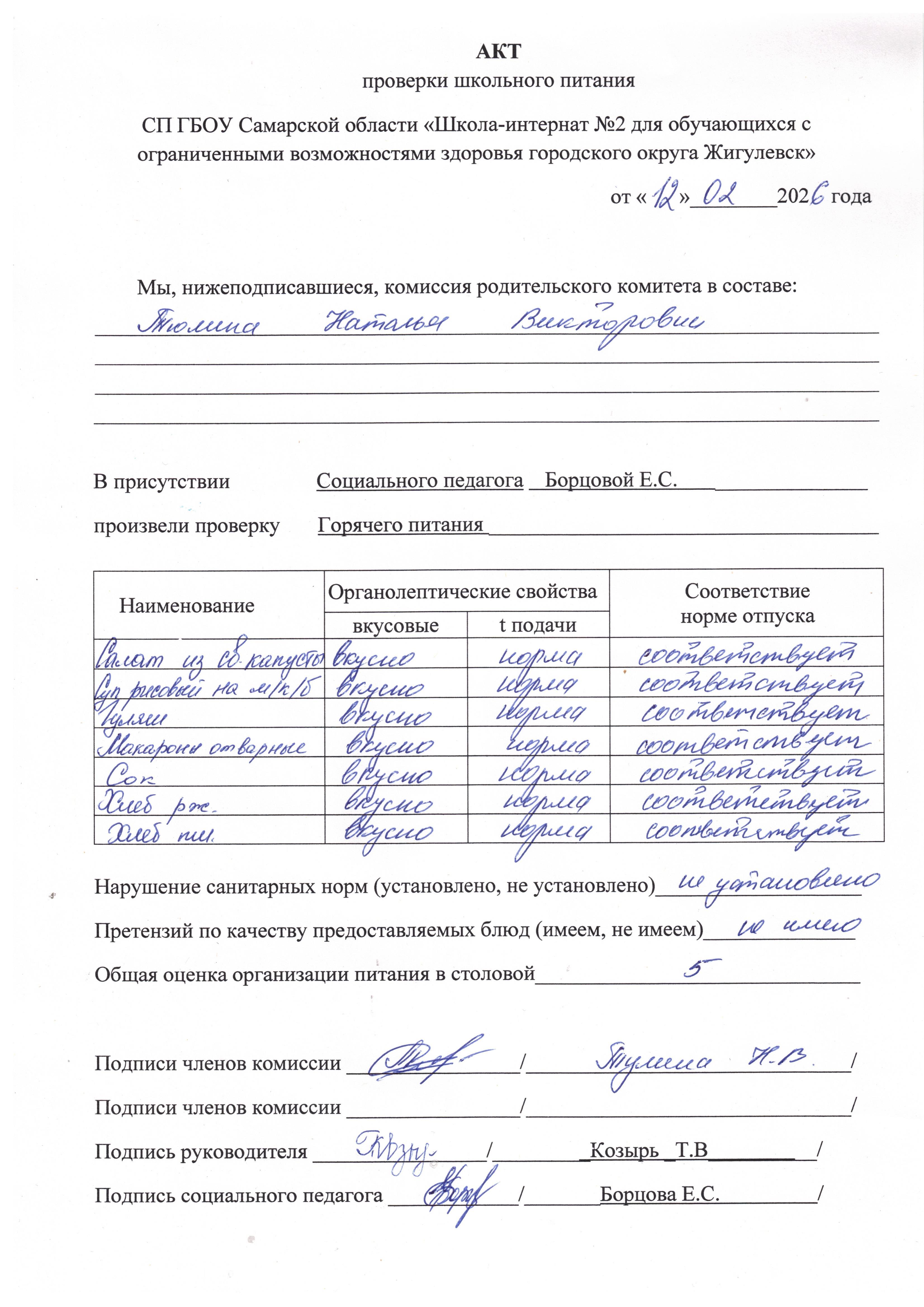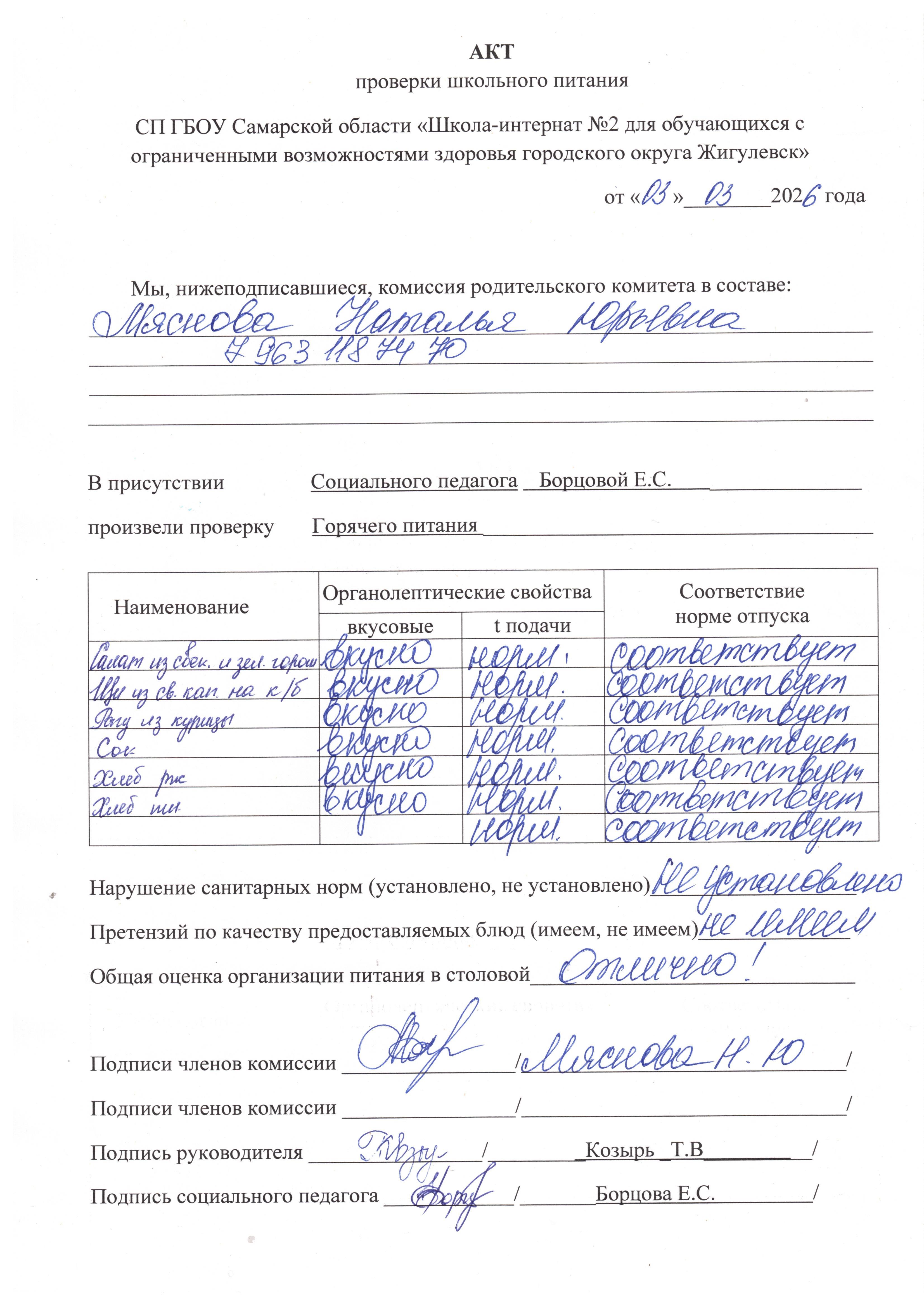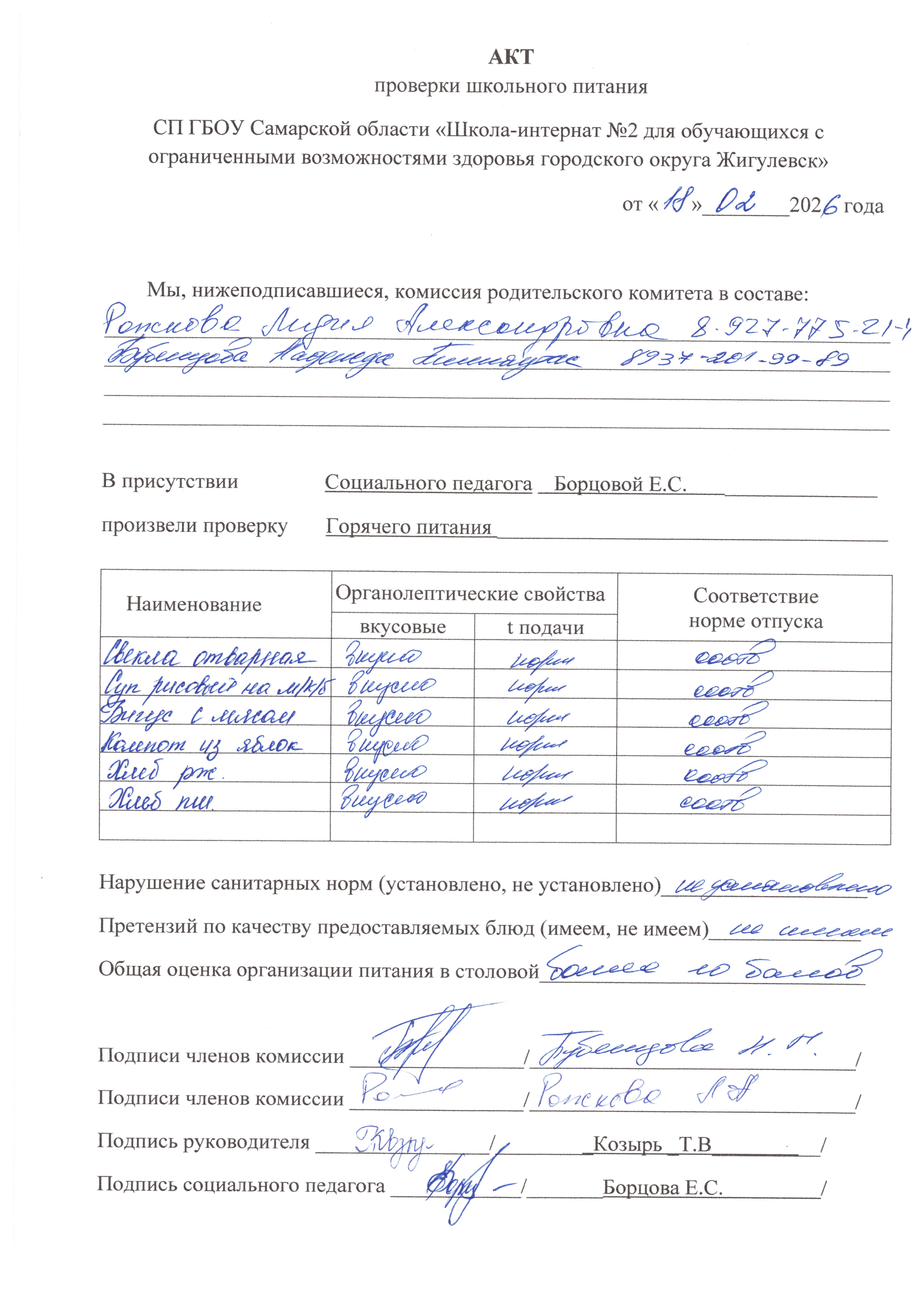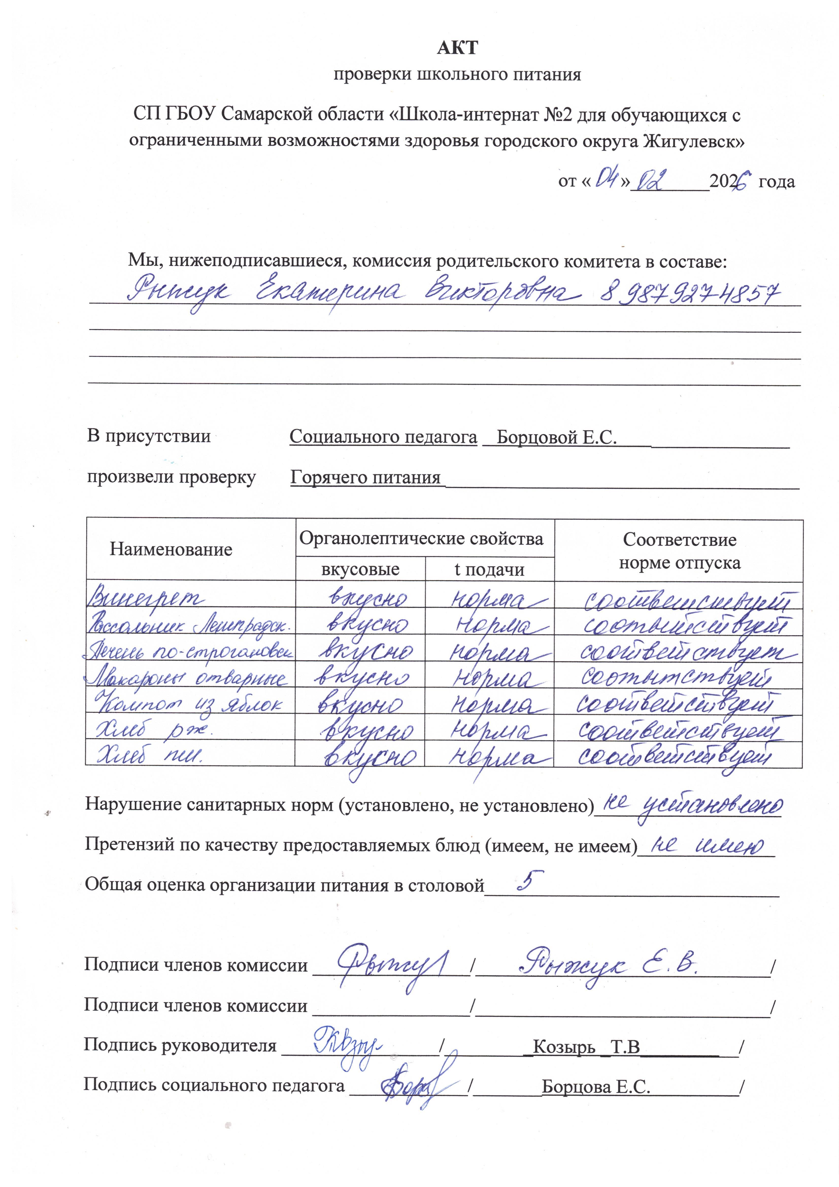 Акты проверок школьного питания Cызранского филиала:
