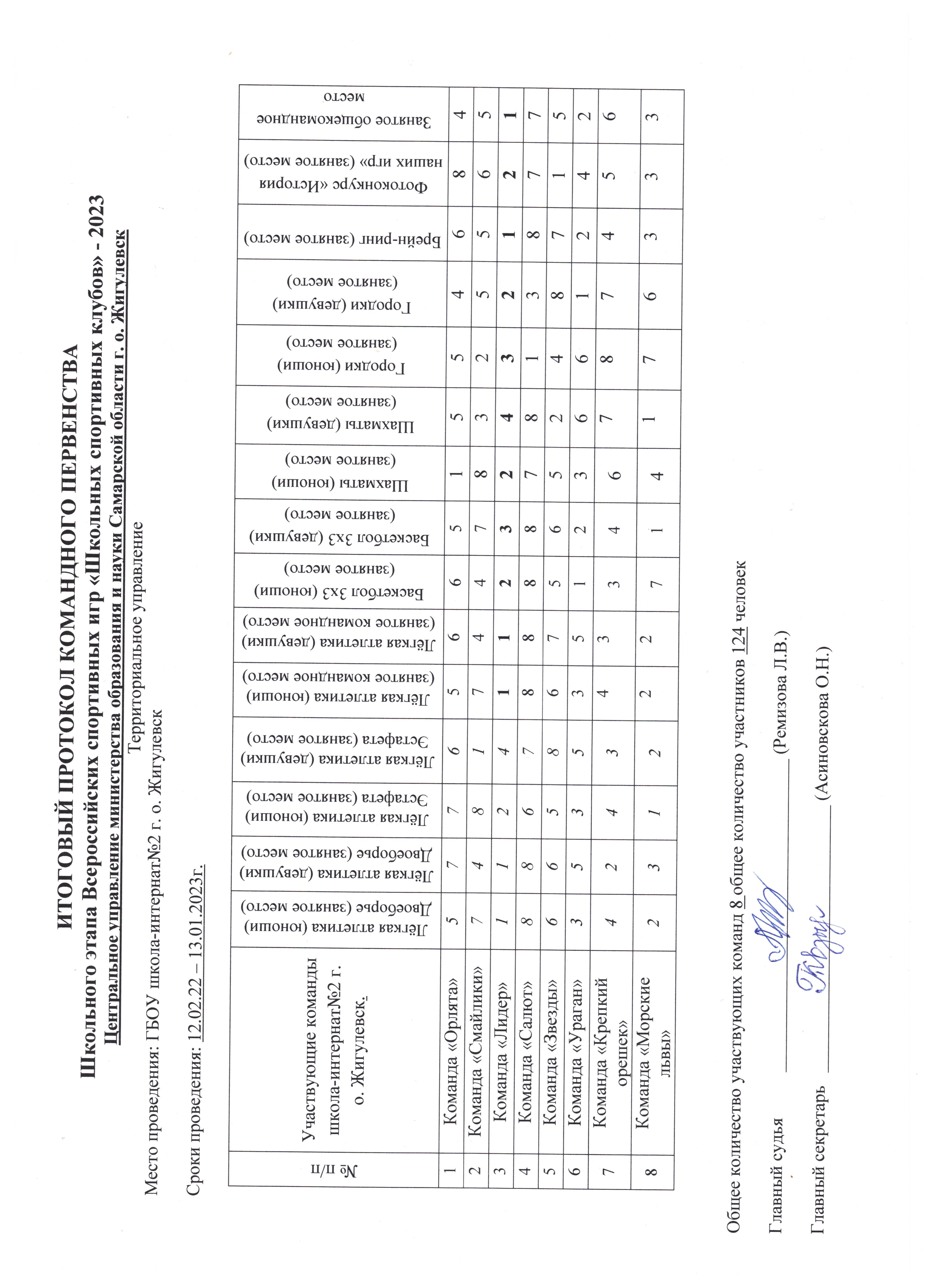 Итоговый протокол командного первенства